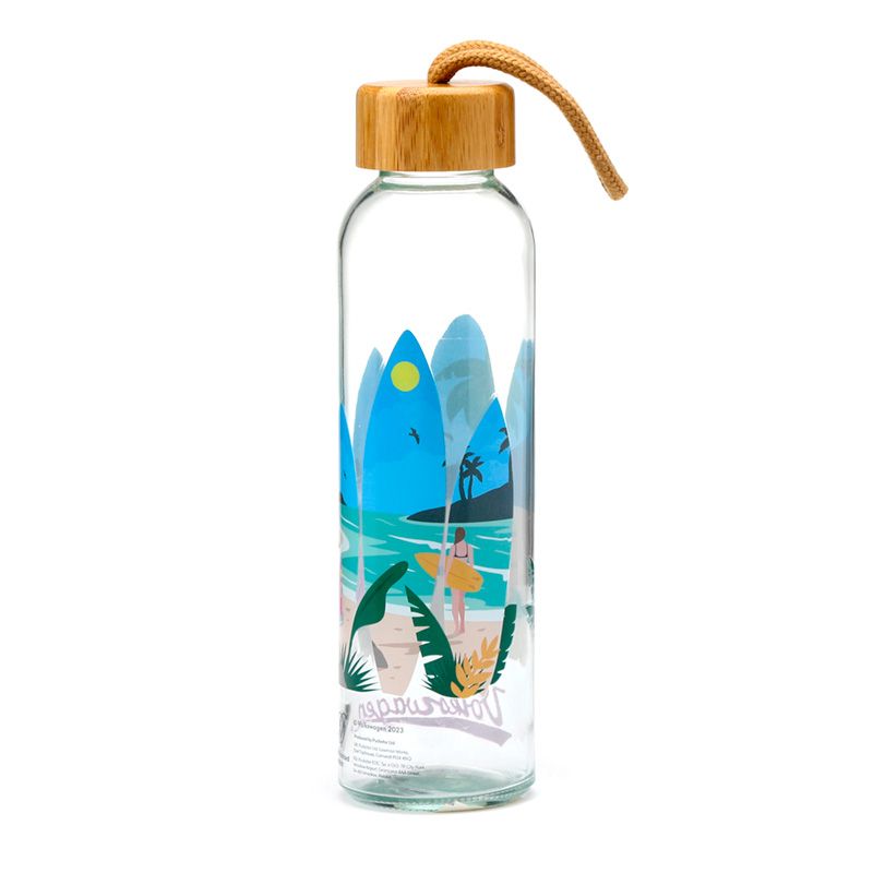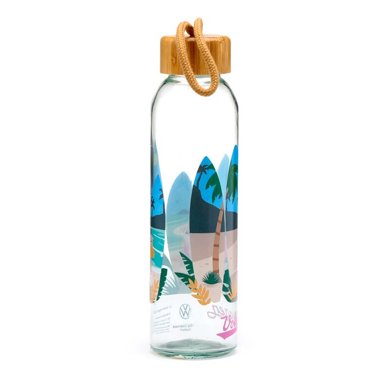 Botella de Cristal con Tapón de Bambú Caravana Volkswagen VW T1 Camper Olas