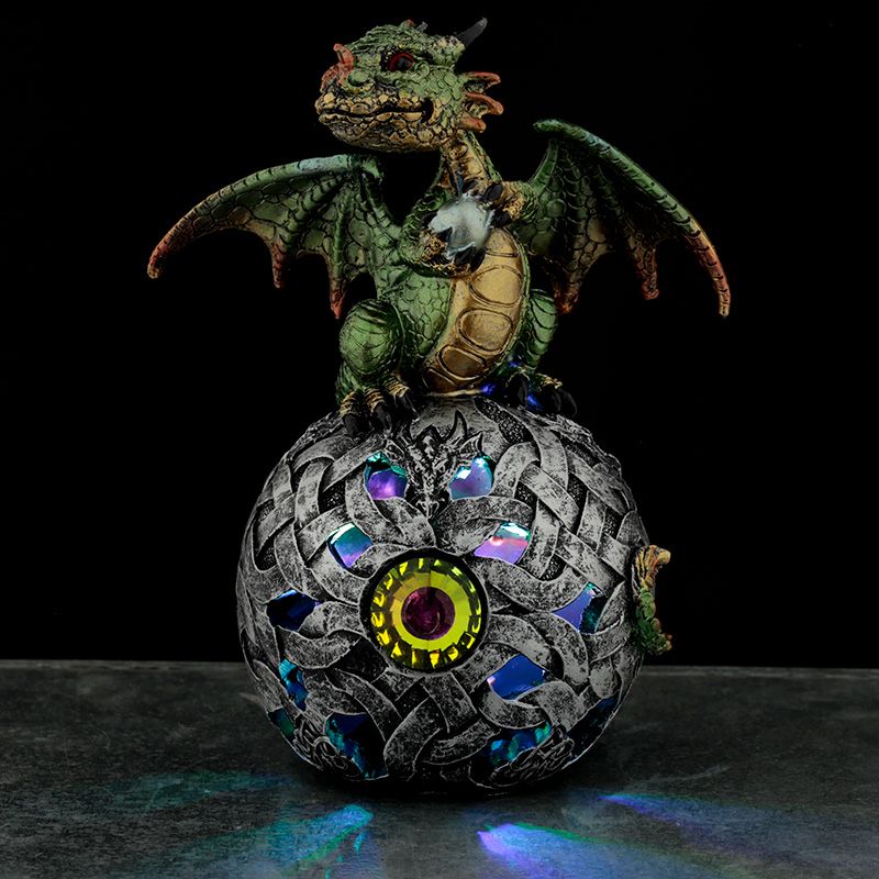 Figura Dragón con Luz LED Dragón y Bola Decoración Celta