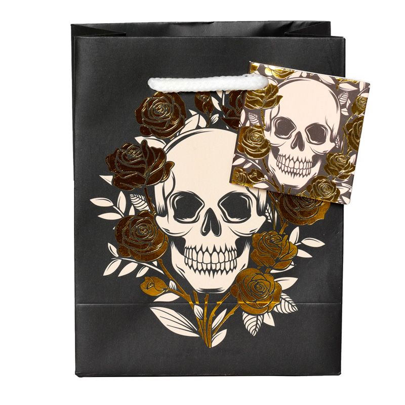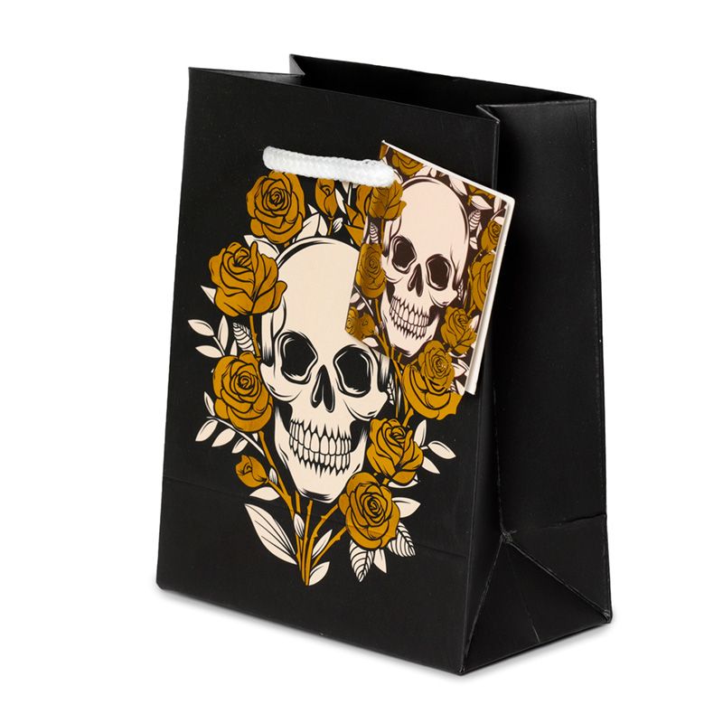 Bolsa de Regalo Calavera y Rosas Metalizada Pequeña