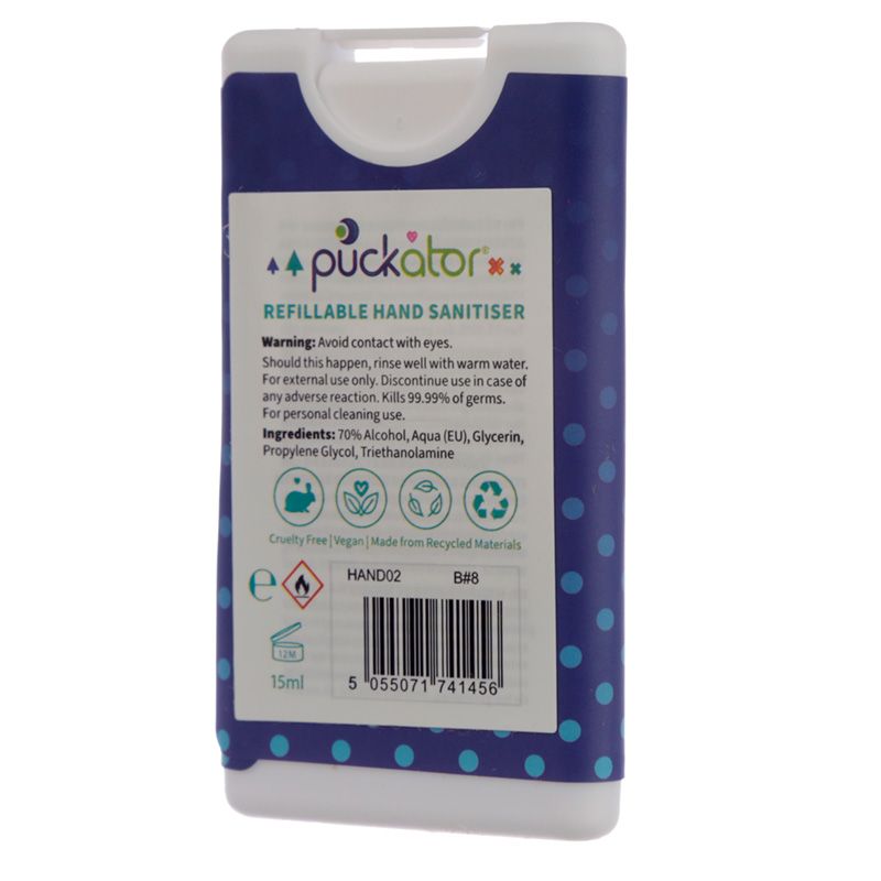 - Rellenable: Sí -Levanta la tapa que protege el spray y saca la pestaña fuera. El higienizante puede rellenarse a través del agujero y volver a colocar la tapa.