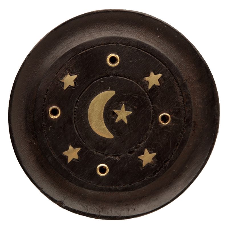Quemador de Incienso Redondo Madera de Mango Luna en Negro