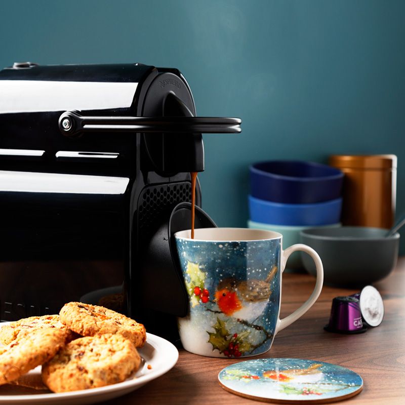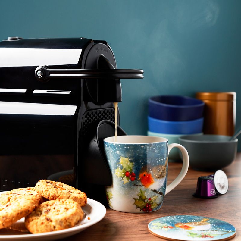 Taza de Porcelana y Posavasos Navidad Jan Pashley El Petirrojo Robin